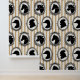 Hand-drawn animal cameo prints (horse, cow, rooster, duck) on ticking stripe or gingham in black, mocha and khaki make for a rustic barnyard farmhouse collection. Ideal for wallpaper, curtains, aprons, recipe binders, placemats, napkins, and journals—bringing cozy vintage country kitchen charm to your table and walls.