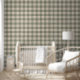 Papel Pintado Rustic Linen Buffalo Check Beige and Green Plaid