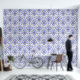 Papel Pintado Sage Green and Blue Damask Floral pepita y palo