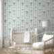 Papel Pintado Sage Green Bows and Lace Vertical Stripes