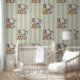 Papel Pintado Sage Green Striped Elephant and Teddy Bear