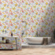 El elegante papel de la pared presenta un patrón repetido de hojas de otoño tempranas en naranjas y rojos con bayas azules sobre un fondo gris claro. Perfecto para muros de acento y una variedad de proyectos caseros DIY