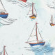 Patrón acuático en suave azul marino, rojo y amarillo con veleros, diseño más apacible y tranquilo para la decoración costera en la habitación de los niños, dormitorio, baño, casa de playa, casa de vacaciones...