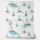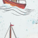 Patrón acuático en suave azul marino, rojo y amarillo con veleros, diseño más apacible y tranquilo para la decoración costera en la habitación de los niños, dormitorio, baño, casa de playa, casa de vacaciones...