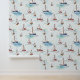 Papel Pintado Serene Blue Red Sailing Bots on Sea Pattern