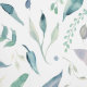 Se trata de una huella de acuarela sin fisuras en un fondo blanco. El diseño está acondicionado con hojas de forma variada en tonos de teca, salvia y lavanda polvorienta, pastel.