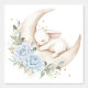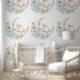 Papel Pintado Sleepy Bunny Rabbit Moon Blue Floral Nursery