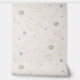A gentle watercolor space pattern with pastel planets and twinkling stars, designed to create a calm and dreamy atmosphere, perfect for nurseries, kids rooms, and modern interiors, soft colors inspire imagination and peaceful rest