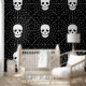 Un espectacular cráneo gráfico con estilo gótico y telaraña. Las opciones de la plantilla le permiten cambiar el color de fondo, agregar texto y filtrar la ilustración.