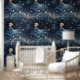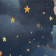 Imaginen un hermoso cielo estrellado nocturno contra un fondo azul oscuro, con niños sentados en las nubes, leyendo un libro. Papel de escritorio perfecto para su hijo