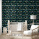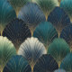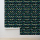 Papel Pintado Teal Navy Gold Art Deco Fan Pattern