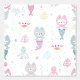 Papel de tapiz de temática náutica decorado con bonitos gatitos de sirena.