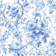 Papel Pintado Timeless Blue French Toile Roses Floral Wallpaper