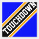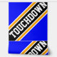 Este diseño deportivo de fútbol presenta texto atlético TOUCHDOWN dentro de bandas de carreras anchas diagonales en negro, blanco y amarillo dorado contra fondo verde brillante. Las letras primera y última del texto salen de los bordes de diseño con un efecto de pancarta dinámico. El diseño está embaldosado repetidamente para lograr un efecto super fresco. Los colores y el texto de este diseño se pueden personalizar.