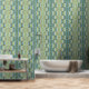 Papel Pintado Tiras y cajas azules, verdes y de crema
