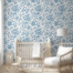 Papel Pintado Toile-de-jouy Chinoiseries Blue Floral Pattern