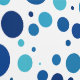 Los puntos de polka son de diferentes tamaños y tonos azules.