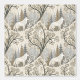 Este tranquilo tapiz de invierno presenta un majestuoso lobo blanco en su centro, rodeado de árboles con polvo de nieve en tonos suaves de crema, marrón, gris y azul pálido. Un segundo lobo está sutilmente enclavado en la esquina inferior, insinuando la vida invisible en el tranquilo bosque. Este diseño, con una mezcla de árboles de ramas desnudas y verdes, enmarcado por delicados elementos decorativos, evoca la belleza natural, la calma y un toque de magia de invierno. Ideal para los amantes de la naturaleza, los amantes de los animales y los ambientes de temporada o de fantasía.