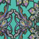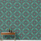 Magnífico diseño, decorado con colores florales vivos y estilo renacentista italiano. El diseño está hecho de flores de color acuático y tinta negra, el fondo principal del tapiz es una esmeralda verde claro y el adorno floral está dominado por los colores verde esmeralda, azul cielo y púrpura pastel.