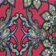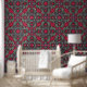 Magnífico diseño, decorado con colores florales vivos y estilo renacentista italiano. El diseño se compone de flores dibujadas a mano con acuarela y tinta negra, el fondo principal del papel pintado es rojo y rojo, y el adorno floral está dominado por los colores verde esmeralda, azul cielo y púrpura pastel.