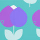 Papel Pintado Tulipanes geométricos morados y acuáticos