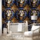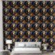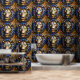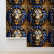 Papel Pintado Turquesa Y Cabeza De León De Oro,