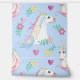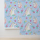 Transform your child's room into a kingdom of imagination and joy! This wallpaper features a unique design combining dreamy watercolor unicorns, pink flowers, and vibrant hearts, all against a serene celestial background.