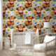 Papel Pintado Vaca Highland en flores silvestres
