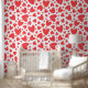 El papel pintado de este dormitorio de chicas muestra unos bonitos corazones de amor rojos sobre un fondo blanco. Un diseño bonito para una pared de acentos.