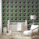 Este jarrón con estampado de lirio, inspirado en el estilo de las artes y artesanías, está lleno de un ramo de flores mezcladas. Este papel pintado es perfecto para muchas habitaciones y decoraciones.