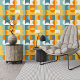 Este diseño muestra un diseño geométrico moderno con círculos y medias círculos en tonos de verde marino, azul verde azulado, amarillo y naranja sobre un fondo blanco. Es un diseño elegante y elegante que incorpora un minimalismo ecléctico, perfecto para los diseñadores de interiores artísticos, los entusiastas de la decoración, los creadores de tendencias y los aficionados a los motivos geométricos digitales retro o abstracto vintage. Este patrón de hipster ornamentado pero divertido es versátil, disponible en una variedad de objetos contemporáneos de decoración en el hogar, lo que lo hace adecuado para realzar el ambiente de espacios como dormitorios para maestros o niños, cocinas, viveros, salones, cuevas para mujeres, dormitorios universitarios, condominios, estudios o apartamentos.