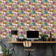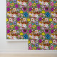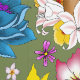 Un retrato de un gato salvaje caracal dibujado en un estilo tatuado. Flores silvestres por todo el gato caracal en el fondo de verde