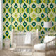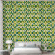 Esta obra de arte presenta un llamativo patrón moderno de mediados de siglo compuesto por formas y curvas audaces y abstractas. El diseño se caracteriza por un motivo repetitivo de ovarios alargados y formas de lágrimas en diferentes tonalidades de verde, verde azulado y amarillo. El patrón, puesto sobre un fondo de crema clara con texturas sutiles y afligidas, crea una sensación de profundidad y movimiento. La paleta de colores y formas geométricas inspiradas en la retro le confieren a la composición un encanto vintage pero intemporal, convirtiéndolo en una pieza vibrante y llamativa.