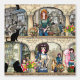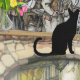 El arte de Anton Pieck sobre la vieja pintura del mercado de Ámsterdam, IA, generado con algunos modelos modernos y gatos negros para convertirla en un diseño único