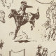 Este fondo de pantalla tiene un patrón vintage de occidente salvaje lleno de vaqueros rodeo sobre caballos que rotan, montan y rotan bronce.