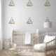 Este bonito fondo náutico cuenta con hermosas veleras acuáticas con rayas azules y crema en blanco. Perfecto para guarderías, habitaciones para niños y salas de juegos.