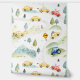 A whimsical repeating pattern featuring yellow cars, a red car, and a blue tractor traveling along a curvy country road surrounded by watercolor hills, trees, and gentle road signs—creating a soft, storybook world perfect for kiddos who love vehicles and cozy outdoor adventures.