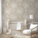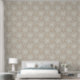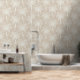 A serene palm tree pattern featuring white palms arranged within a subtle arched lattice structure on a soft beige background. The design feels airy, relaxed, and warm, blending coastal, tropical, colonial, bohemian, and nautical influences.
