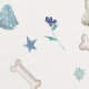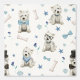 El diseño presenta los territorios blancos de West Highland con varios accesorios en azul y negro, como sombreros, gafas, corbatas, bufandas y huesos sobre un fondo blanco. ¡Muestra tu amor por Westies!