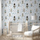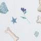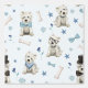 El diseño presenta los territorios blancos de West Highland con varios accesorios en azul y negro, como sombreros, gafas, corbatas, bufandas y huesos sobre un fondo azul claro. ¡Muestra tu amor por Westies!