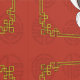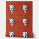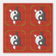 El Yin oscuro y el Yang claro el koi nadan unos a otros creando un Taijitu chino clásico, representando armonía y equilibrio en todas las cosas. Un marco clásico chino en oro enmarca a los dos peces, y un patrón tenue de símbolos chinos para la riqueza, la longevidad, la doble felicidad y la buena fortuna en un fondo rojo completan el diseño.