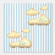 A playful light blue design with adorable floating clouds that display your baby's name on the walls of their room, celebrating their arrival. It's easy to customize and change the name of your little one