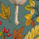 Fauna y flora silvestres de otoño pintadas a mano: zorros, hojas forestales, setas y bayas