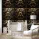 Prachtig behang met een retro design van zwart en goud. Een luxe item voor uw interieur.