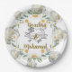 Celebra el amor con este elegante plato de boda personalizado que presenta los nombres Bouchra y Mohamed. Adornado con rosas blancas suaves, margaritas y vegetación, este plato decorativo muestra un motivo romántico de "Juntos para siempre" con una flecha y un corazón. Perfecto para recepciones de boda, aniversarios o como recuerdo para el día especial de la pareja