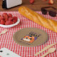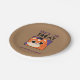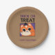 Plato de fiesta de Halloween, truco o tratar a gatito con gorra negro con fondo marrón