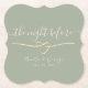 Establece el tono para tu celebración previa a la boda con estos elegantes posavasos de papel para cena de ensayo. Con un fondo verde sage chic, un corazón de cuerda dorada romántico y una elegante letra que dice “La noche antes”, este diseño elegante es perfecto para cócteles o decoraciones de mesa la noche antes de tu gran día.
