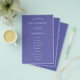 Programa de Boda Simple Texto Azul. Una excelente alternativa de PAPEL (no cartulina) SIN SOBRE y a un precio económico. Un diseño tipográfico simple y elegante con texto negro sobre azul violeta pervinca para sus programas de boda que es totalmente personalizable. El texto, que puede personalizar fácilmente, está centrado en ambos lados. Puede cambiar los colores del texto y del fondo si lo desea para que coincida con el tema de color de su boda a través de la opción "Personalizar más" así como otras ediciones que pueda necesitar. Si necesita ayuda con la edición de este diseño, por favor envíeme un mensaje.