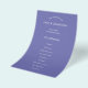 Programa de Matrimonio Azul de Texto Simple. Una alternativa de gran valor PAPER (no tarjeta) SIN ENVELOPES y a un precio de presupuesto. Un diseño tipográfico sencillo y elegante con texto negro sobre el violeta azul perwinkle para sus programas de boda, que es totalmente personalizable. El texto, que puede personalizar fácilmente, está centrado en ambos lados. Puede cambiar el texto y los colores de fondo si desea coincidir con su tema de color boda a través de la opción Personalizar Más adelante, así como otras modificaciones que puede necesitar. Si necesitas ayuda para editar este diseño, por favor envíame un mensaje.