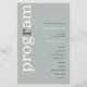Programa de Matrimonio de Texto de Marfil Sage Simple de Papel. Una alternativa de PAPER (no tarjeta) de gran valor a un precio de presupuesto. Un diseño tipográfico moderno con el programa en tipografía grande en marfil con la "r" en gris, rotado y a la izquierda sobre un fondo de verde salvia claro. Los colores del fondo y del texto se pueden cambiar si se desea a través del Personalizar.